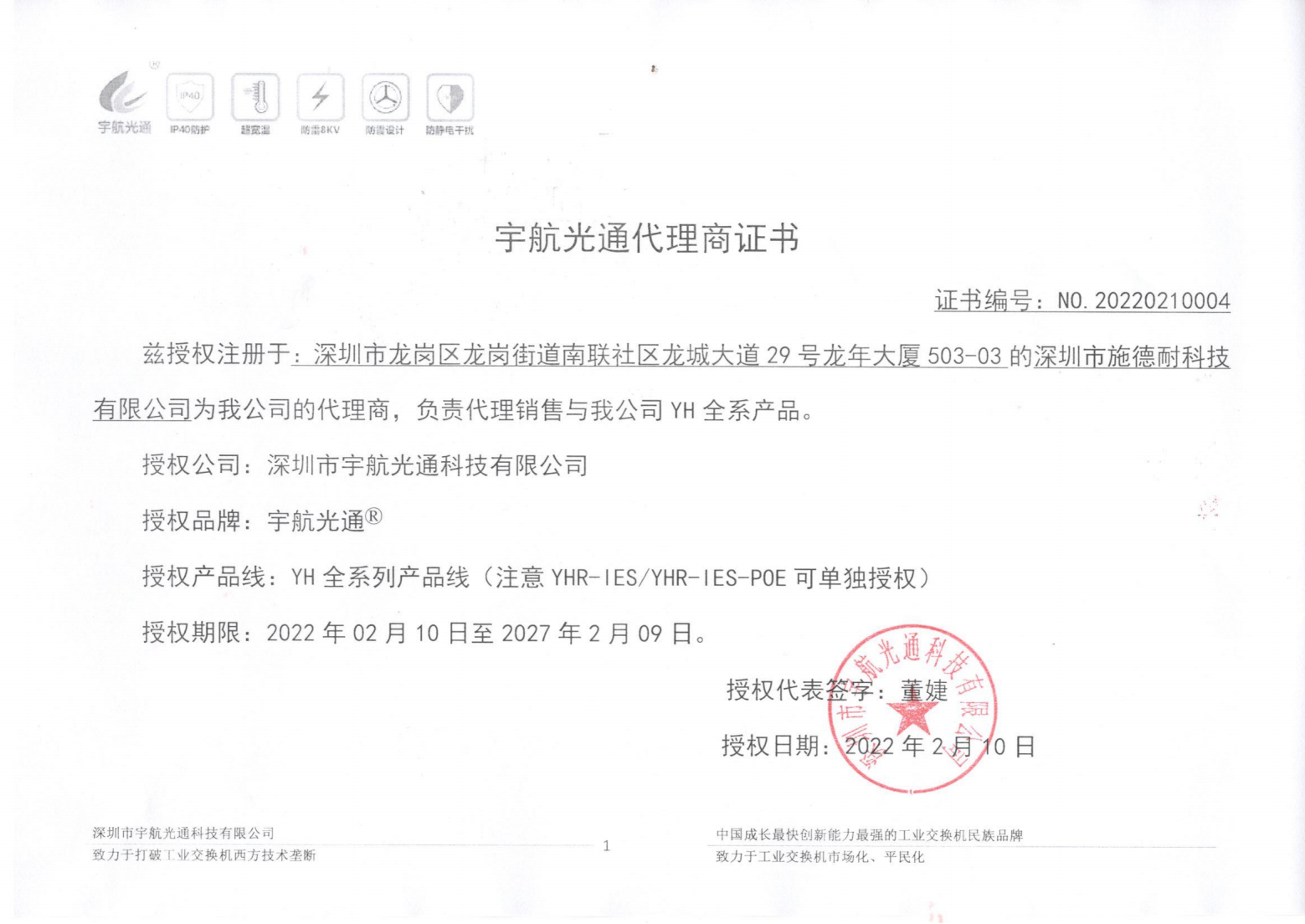 宇航代理商授權(quán)書