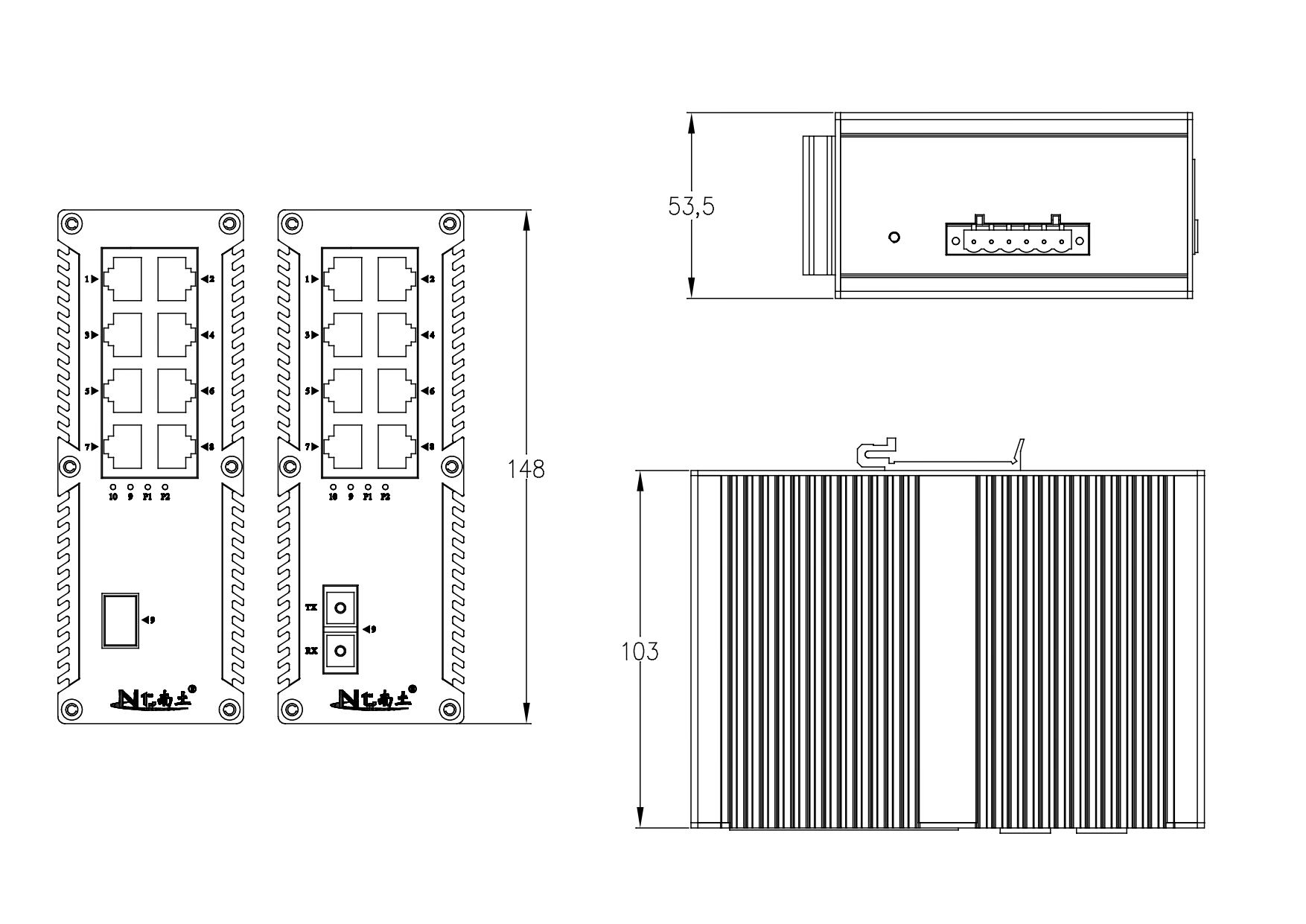 工業(yè)級(jí)POE(NT品牌)非網(wǎng)管1百光8百電(8POE),ST/單模雙纖20KM(1310nm),導(dǎo)軌式-DC48~57V供電-寬溫(-40℃-85℃)-。默認(rèn)不含AC電源適配器。 |