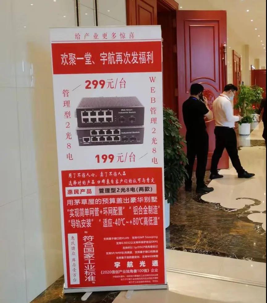 在本次會(huì)議中,宇航工業(yè)交換機(jī)再次發(fā)福利,管理型2光8電僅【299元/臺(tái)】,WEB管理型2光8電僅【199元/臺(tái)】。用茅草屋的預(yù)算蓋出豪華別墅的效果,鋁合金制造、導(dǎo)軌式安裝,寬溫-40℃~+80℃,可實(shí)現(xiàn)簡(jiǎn)單網(wǎng)管+環(huán)網(wǎng)配置。一樣的好品質(zhì),不一樣的價(jià)格,只為回饋廣大用戶對(duì)宇航的支持~
