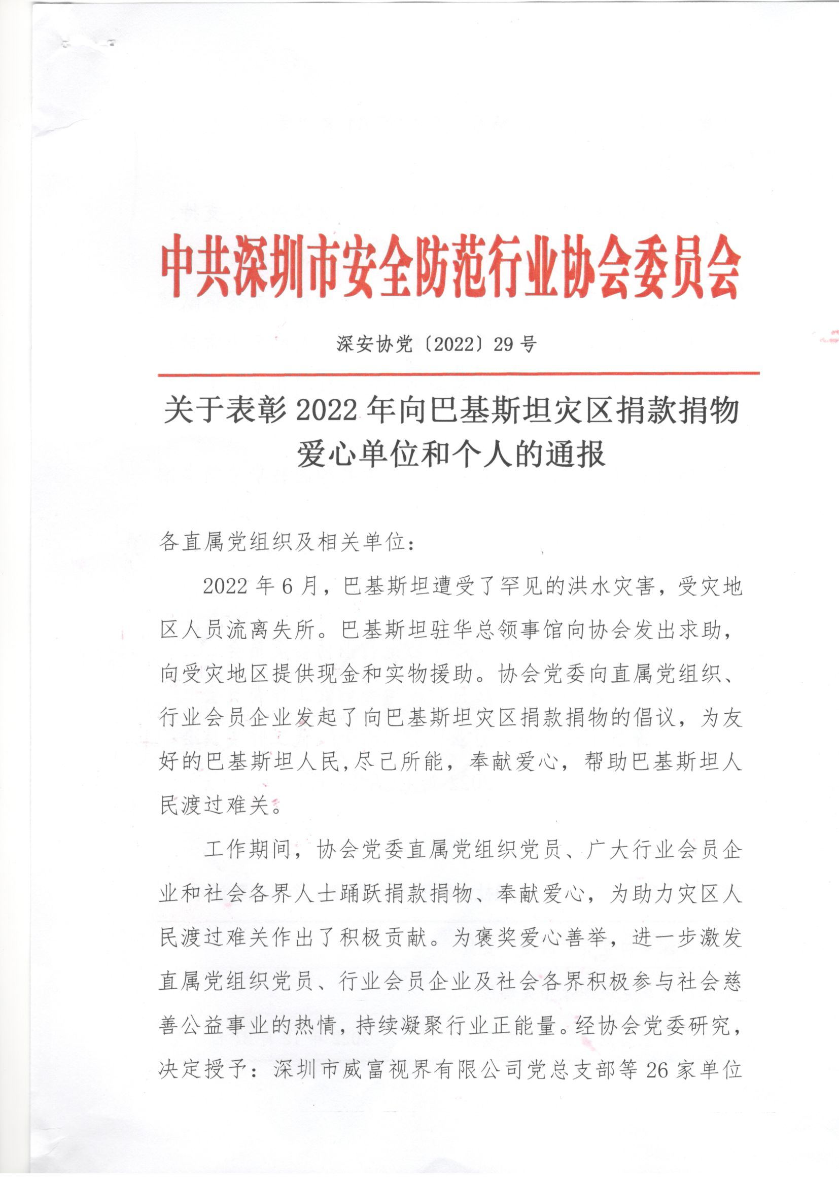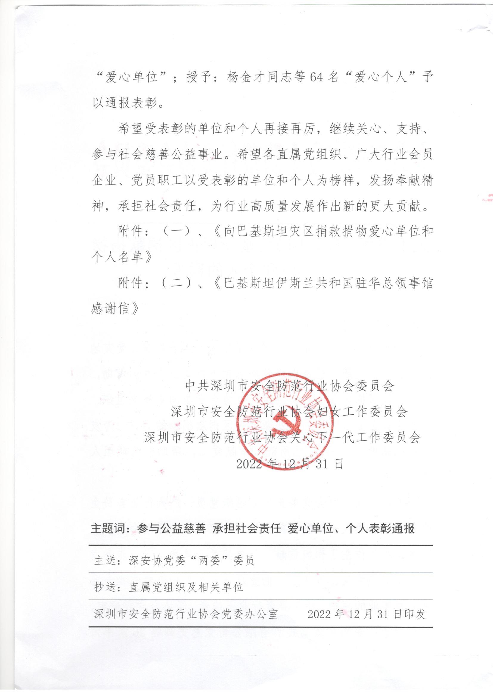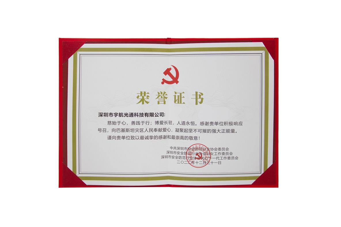 深圳市宇航光通科技有限公司:慈始于心,善踐于行;博愛長駐,人道永恒。感謝貴單位積極響應(yīng)號(hào)召,向巴基斯坦災(zāi)區(qū)人民奉獻(xiàn)愛心,凝聚起堅(jiān)不可摧的強(qiáng)大正能量。謹(jǐn)向貴單位致以最誠摯的感謝和最崇高的敬意!