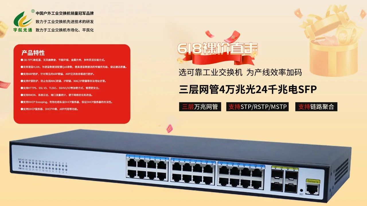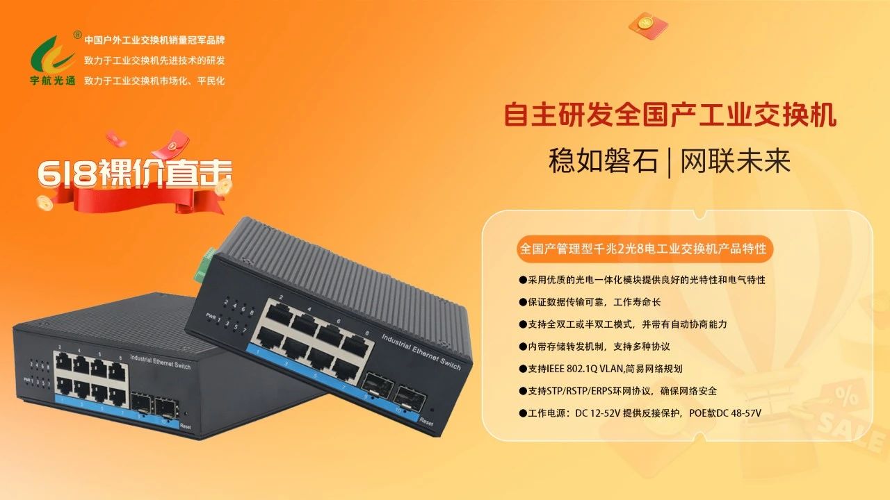 宇航工業(yè)交換機(jī)618鉅惠來(lái)襲!全國(guó)產(chǎn)標(biāo)桿品牌,裸價(jià)直擊,品質(zhì)無(wú)憂!